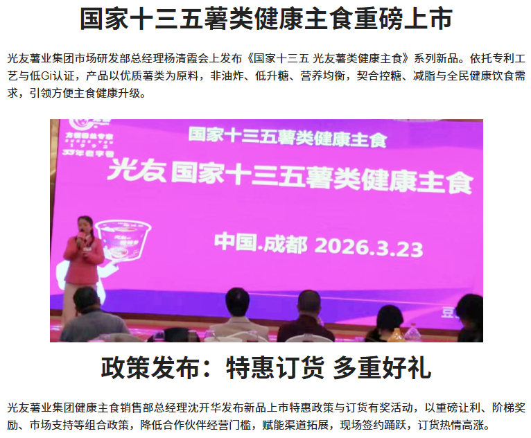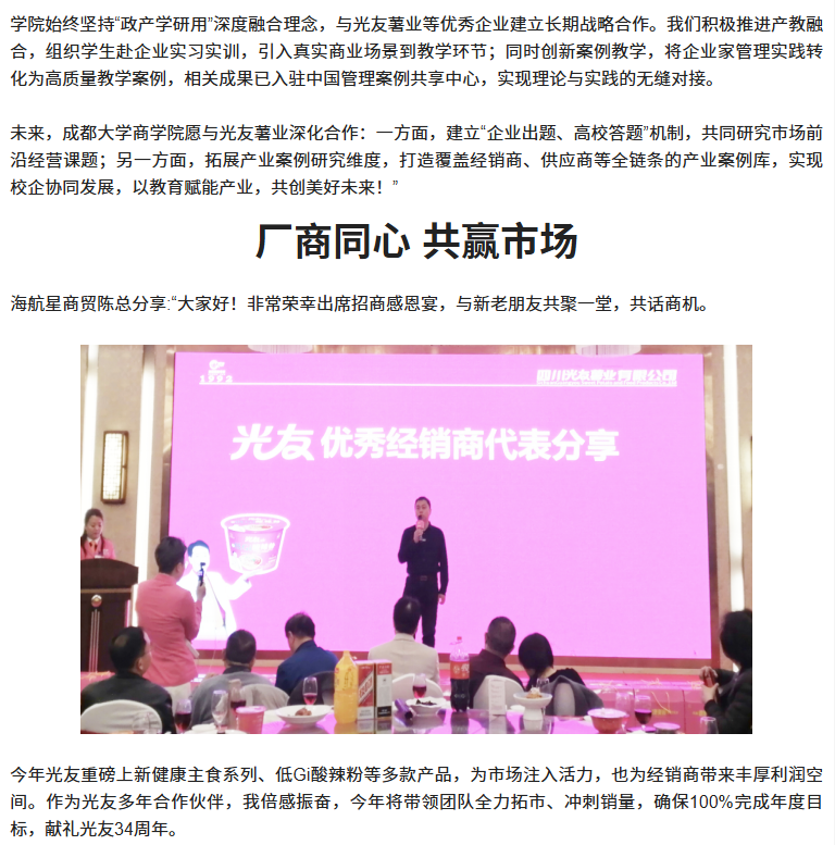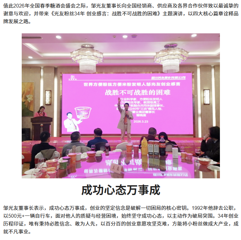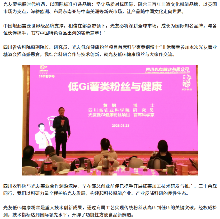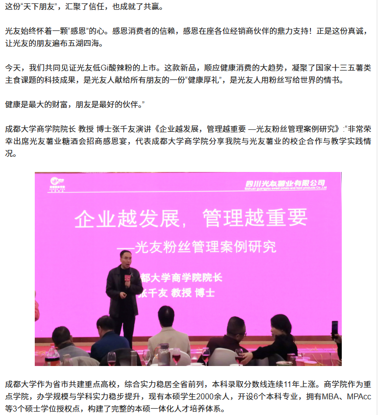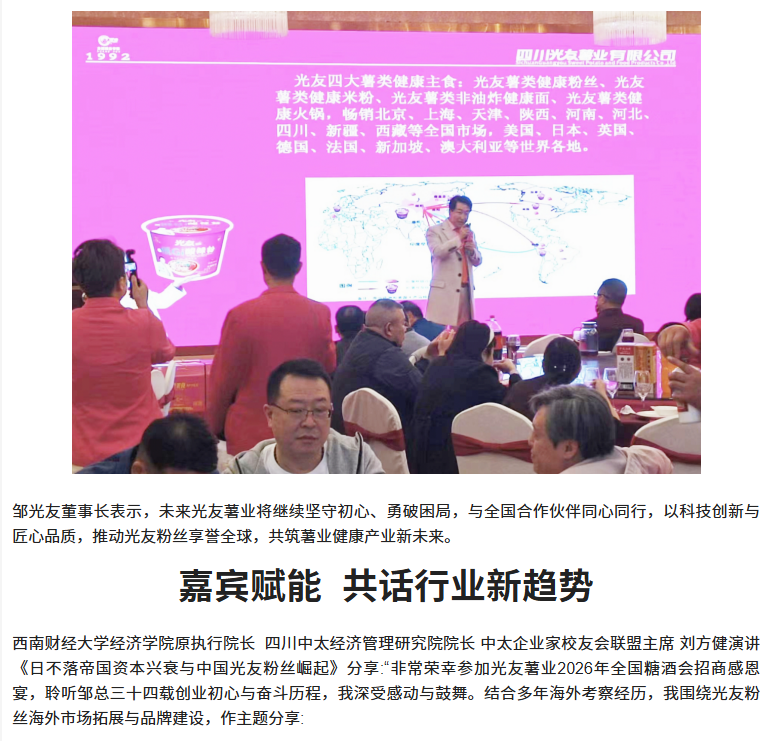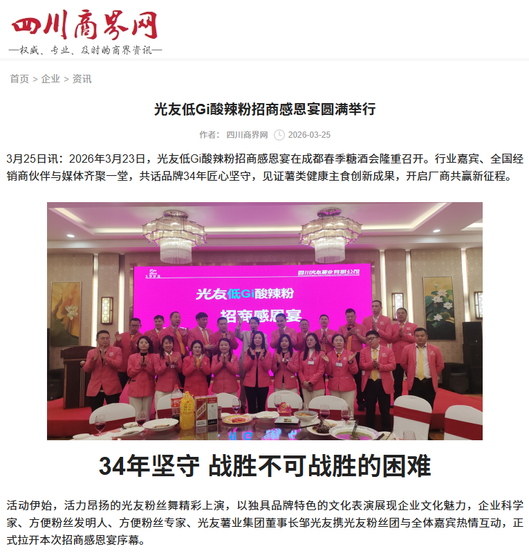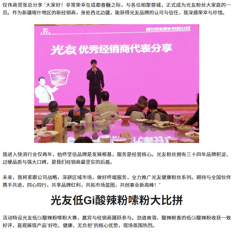 轉(zhuǎn)載四川商界網(wǎng) 光友低Gi健康酸辣粉招商感恩宴圓滿舉行