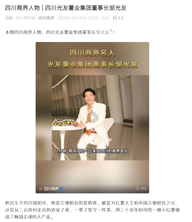 轉(zhuǎn)載四川商界網(wǎng) 四川商界人物|四川光友薯業(yè)集團(tuán)董事長(zhǎng)鄒光友