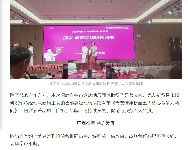 第三屆粉絲論壇 健康粉絲峰會在中國光友紅薯博物園召開